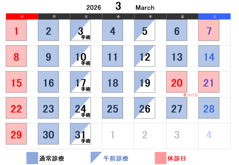 ※急遽、会議等で院長が不在となる場合もございますので、ご了承ください。